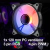 Ventilátor do PC 120mm, 5V 3 pin aRGB, PWM 4pin